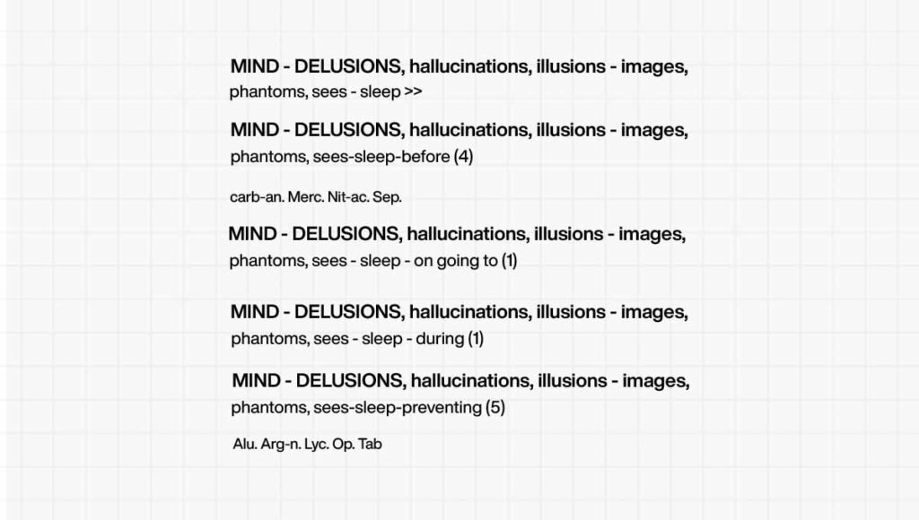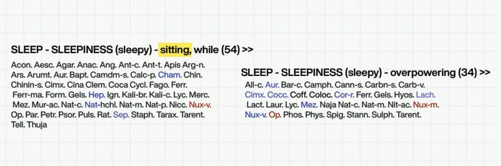During Homeopathic Case History taking causation, duration, sleep patterns, dream types, other physical and mental/ emotional symptoms taken to explore the causation and pattern of sleep disturbance.