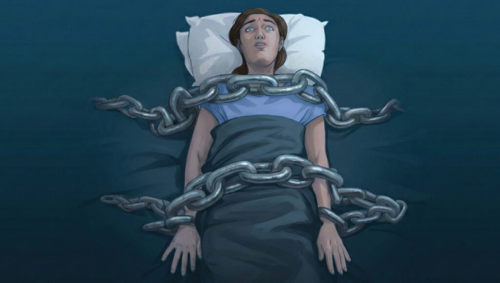 You are unable to move your body or speak with full consciousness. It occurs in the transition period in sleep and waking up. It can last for a few seconds to several minutes.